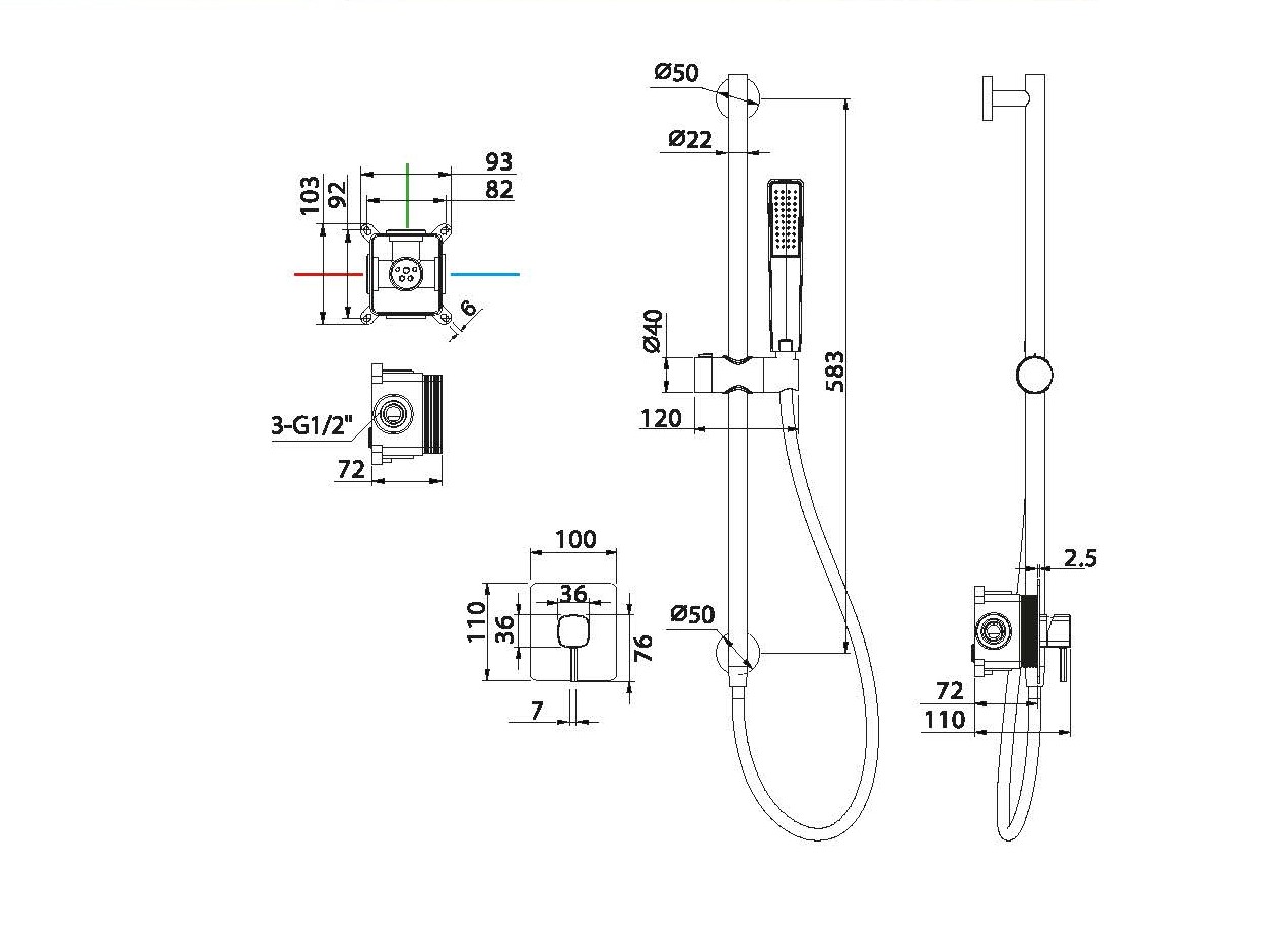 1-OUTLET BUILT-IN BATH SET TOSCANA IN BLACK MATTE