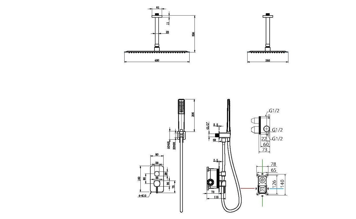 • SHOWER HEAD 25x40CM S.304, ULTRA-FLAT, ANTICALC