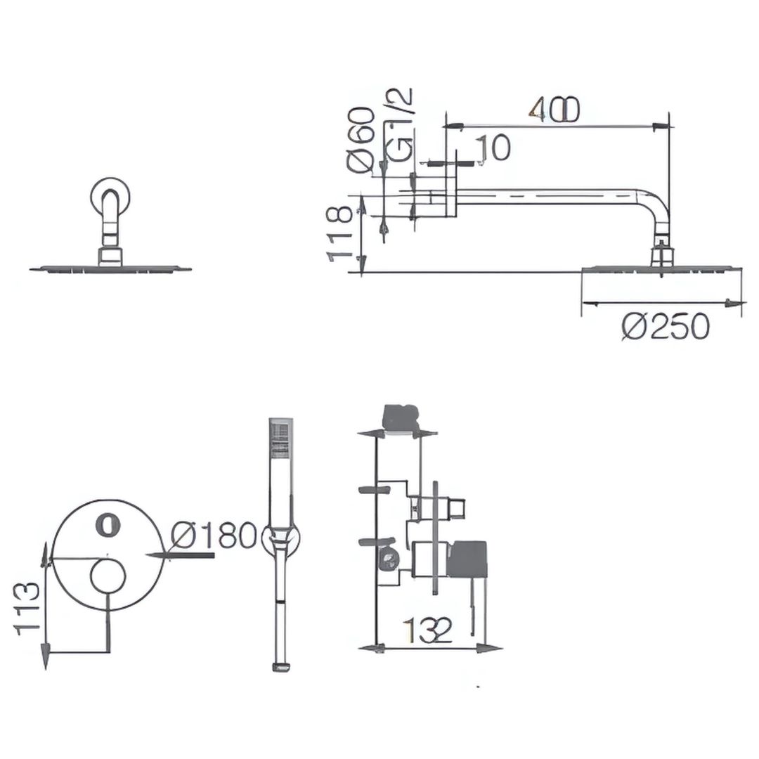 • S304 SHOWERHEAD, Ø25CM, ULTRA-FLAT DESIGN, ANTICALC SYSTEM