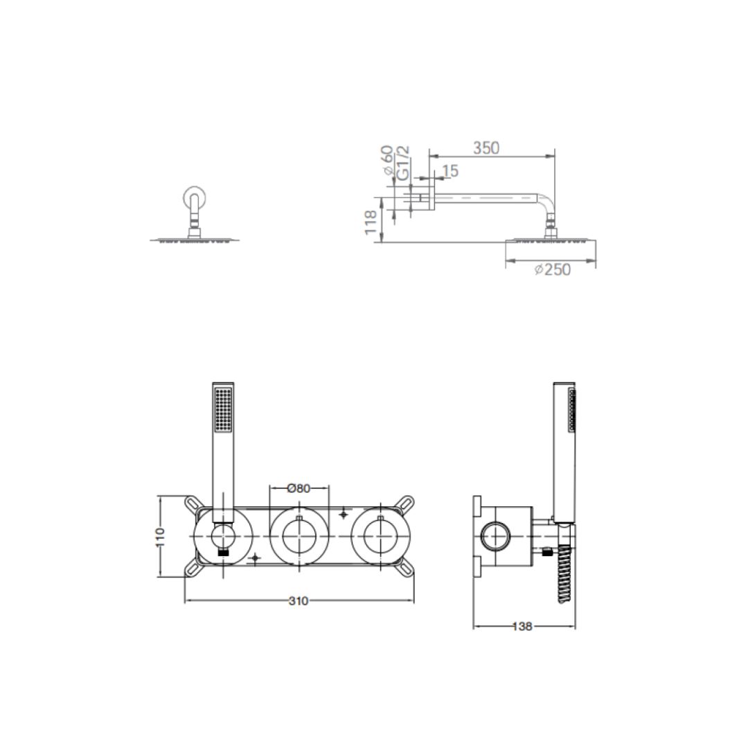 BUILT-IN THERMOSTATIC SHOWER SET ASSEN SERIES IN BLACK GUN METAL