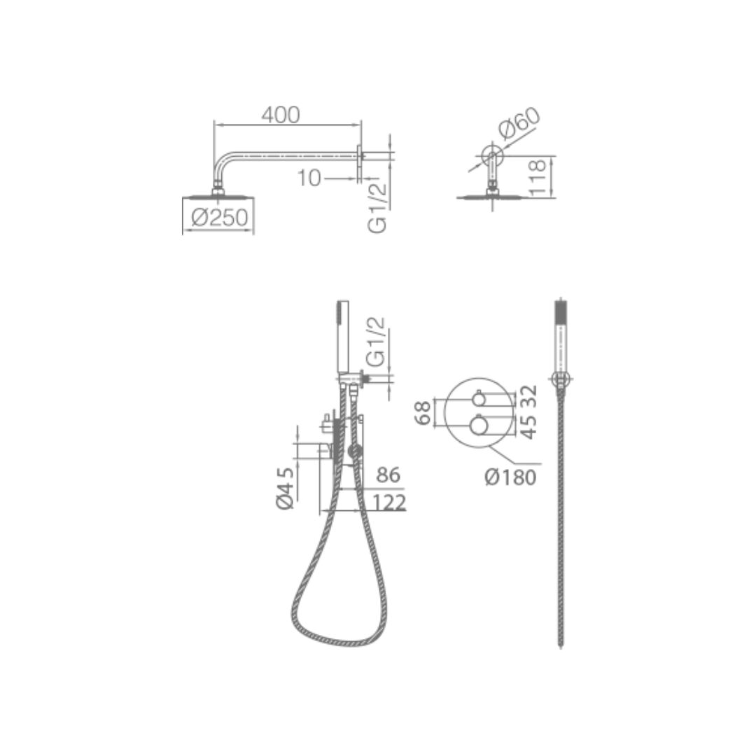 BUILT-IN THERMOSTATIC SHOWER SET GENOVA SERIES IN CHROME