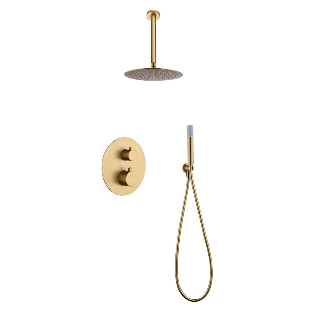 BUILT-IN THERMOSTATIC SHOWER SET WITH CEILING SYSTEM PIAMOTE SERIES (GENOVA) IN BRUSHED GOLD